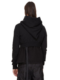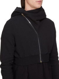 DRKSHDW FW25 CONCORDIANS MICRO MOUNTAIN HOODIE IN BLACK SLUB FELPA THIS MICRO MOUNTAIN HOODIE IS ABOVE WAIST LENGTH WITH LONG SLEEVES. IT HAS A CURVED ASYMMETRICAL ZIPPER CLOSURE, A SMALL FUNNEL NECK AND A LARGE POINTED HOOD. IT HAS RIBBED CUFFS AND WAISTBAND SIGNATURE SINGLE SEAM RUNNING DOWN THE CENTRE BACK SPINE. THIS HEAVYWEIGHT COTTON SWEATSHIRT JERSEY IS MADE WITH A SLUB YARN AND HAS A SOFT AND WASHED HANDFEEL. THIS JERSEY IS GARMENT DYED THIS FABRIC IS MADE USING GOTS CERTIFIED ORGANIC COTTON WHICH MEANS THE NATURAL FIBER IS GROWN WITHOUT HARMFUL CHEMICALS, LEAVING OUR SOIL, AIR AND WATER CLEANER FROM CONTAMINATES COLOR: BLACK MATERIAL: 100% COTTON MODEL IS 189CM TALL MODEL WEARS SIZE S