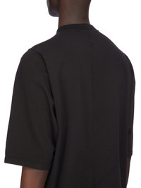 DRKSHDW FW25 CONCORDIANS JUMBO SS T IN BLACK/PEARL COMPACT HEAVY JERSEY THIS JUMBO SS T IS BELOW HIP LENGTH WITH AN OVERSIZED FIT. IT HAS A RIBBED CREWNECK AND ELBOW-LENGTH SHORT SLEEVES. IT FEATURES SIGNATURE FRONT LEVEL SHOULDER SEAMS AND A CENTRE BACK SEAM. THIS HEAVYWEIGHT AND COMPACT COTTON JERSEY HAS A BRUSHED AND SOFT HANDFEEL. THIS JERSEY IS GARMENT DYED THIS FABRIC IS MADE USING GOTS CERTIFIED ORGANIC COTTON WHICH MEANS THE NATURAL FIBER IS GROWN WITHOUT HARMFUL CHEMICALS, LEAVING OUR SOIL, AIR AND WATER CLEANER FROM CONTAMINATES COLOR: BLACK/PEARL MATERIAL: 100% COTTON MODEL IS 189CM TALL MODEL WEARS SIZE S