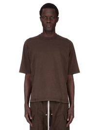 DRKSHDW FW25 CONCORDIANS WALRUS T IN DARK DUST MEDIUM WEIGHT COTTON JERSEY THIS WALRUS T IS BELOW WAIST LENGTH WITH A SLIGHTLY BOXY CUT, SHORT SLEEVES AND A RIBBED CREW NECK. IT FEATURES SIDE SEAMS THAT SLOPE TO THE FRONT BODY, CREATING A CONCAVE FRONT HEM. IT HAS SEAMING ON THE UPPER SLEEVE AND SIGNATURE FRONT LEVEL SHOULDER SEAMS AND A CENTRE BACK SEAM. THIS MEDIUMWEIGHT COTTON JERSEY HAS A COMPACT AND DRY HANDFEEL. THIS JERSEY IS GARMENT DYED THIS FABRIC IS MADE USING GOTS CERTIFIED ORGANIC COTTON WHICH MEANS THE NATURAL FIBER IS GROWN WITHOUT HARMFUL CHEMICALS, LEAVING OUR SOIL, AIR AND WATER CLEANER FROM CONTAMINATES COLOR: DARK DUST MATERIAL: 100% COTTON MODEL IS 189CM TALL ITEM IS AVAILABLE IN ONE SIZE