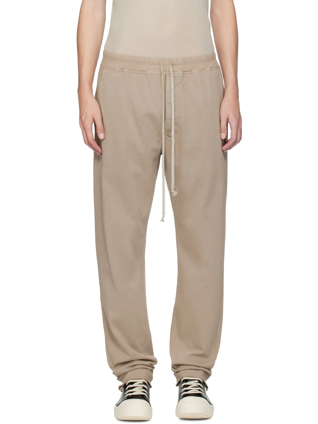 Heavyweight organic cotton jersey sweatpants. · GOTS-certified organic cotton · Garment-dyed · Drawstring at elasticized waistband · Four-pocket styling · Button fly · Rolled edge at vented cuffs Supplier color: Dirty pearl Body: 100% cotton. Trim: 97% cotton, 3% elastane. Made in Italy 252126M190003