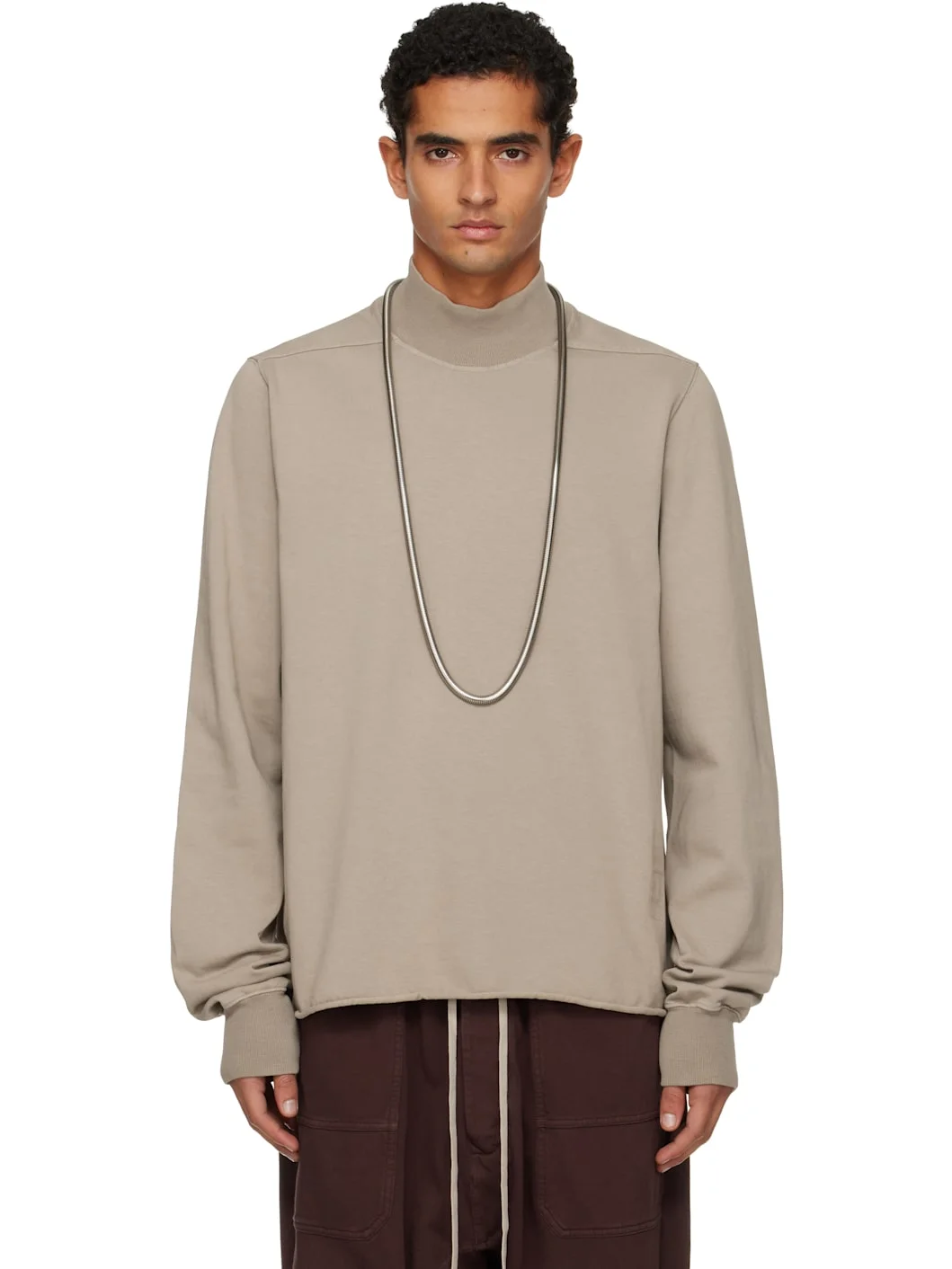 Heavyweight organic cotton jersey turtleneck. · GOTS-certified cotton · Garment-dyed · Rib-knit collar and cuffs · Rolled edge at hem · Offset shoulder seams · Central seam at back · Cutout with rib-knit trim at back · Integrated logo-woven strap at interior Supplier color: Dirty pearl 100% cotton. Made in Italy 252126M205001