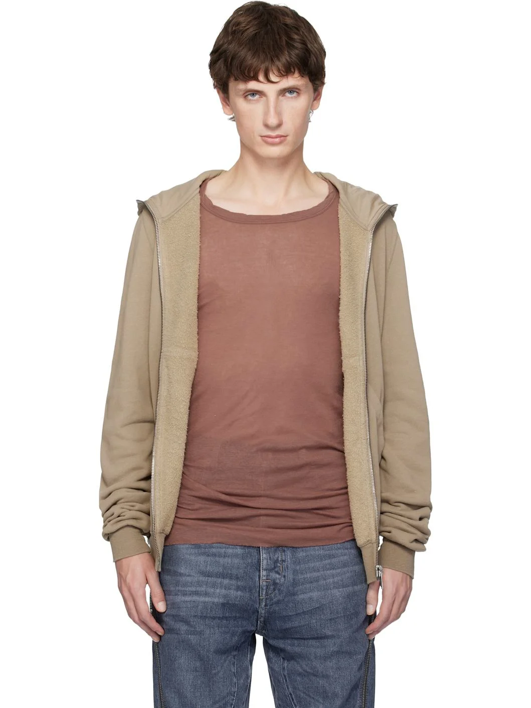 Organic cotton French terry hoodie. · Pilling throughout · Garment-dyed · Zip closure extends to hood · Patch pockets at front · Rib-knit hem and cuffs · Integrated logo-woven strap at interior Supplier color: Dirty pearl 100% cotton. Made in Portugal 252126M202007