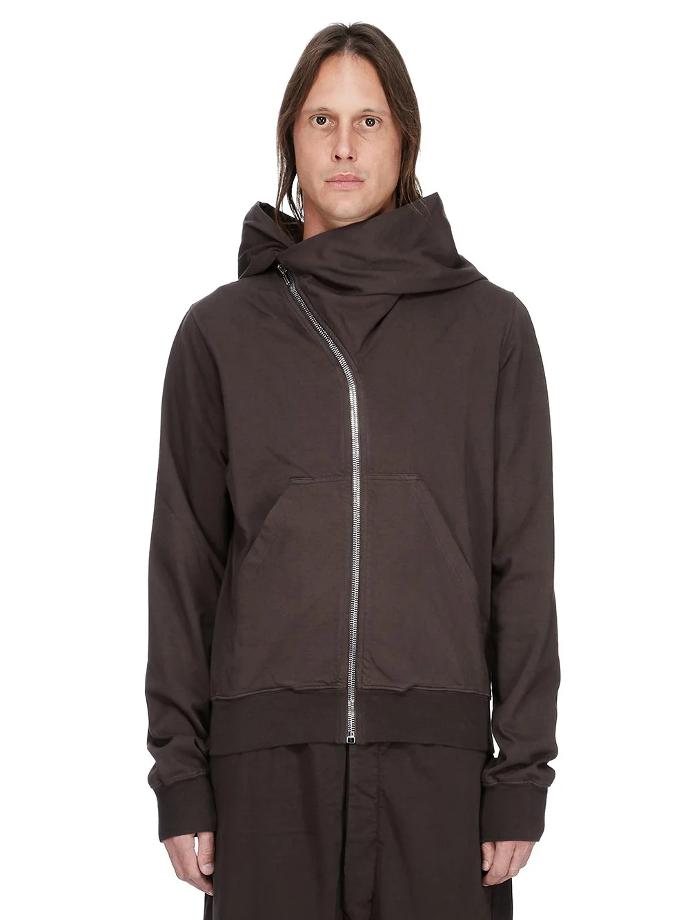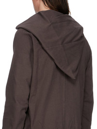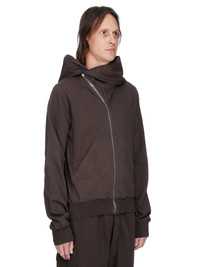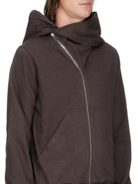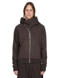 DRKSHDW FW25 CONCORDIANS MOUNTAIN HOODIE IN DARKDUST COMPACT HEAVY JERSEY THIS MOUNTAIN HOODIE IS ABOVE HIP LENGTH WITH LONG SLEEVES. IT HAS A CURVED ASYMMETRICAL ZIPPER CLOSURE, A SMALL FUNNEL NECK AND A LARGE POINTED HOOD. IT HAS TWO FRONT PATCH POCKETS, RIBBED CUFFS AND WAISTBAND SIGNATURE SINGLE SEAM RUNNING DOWN THE CENTRE BACK SPINE. THIS HEAVYWEIGHT AND COMPACT COTTON JERSEY HAS A BRUSHED AND SOFT HANDFEEL. THIS JERSEY IS GARMENT DYED THIS FABRIC IS MADE USING GOTS CERTIFIED ORGANIC COTTON WHICH MEANS THE NATURAL FIBER IS GROWN WITHOUT HARMFUL CHEMICALS, LEAVING OUR SOIL, AIR AND WATER CLEANER FROM CONTAMINATES COLOR: DARKDUST MATERIAL: 100% COTTON MODEL IS 189CM TALL MODEL WEARS SIZE S