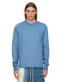 DRKSHDW SS25 HOLLYWOOD CREWNECK SWEAT IN TOOTHPASTE COMPACT COTTON JERSEY THIS CREWNECK SWEAT IS BELOW HIP LENGTH WITH LONG SLEEVES. IT HAS A RIBBED CREWNECK AND CUFFS, AND A RAW CUT HEM. IT FEATURES THE SIGNATURE LEVEL SHOULDER SEAMS AND SINGLE SEAM RUNNING DOWN THE CENTRE BACK SPINE THIS HEAVYWEIGHT AND COMPACT COTTON JERSEY HAS A BRUSHED AND SOFT HANDFEEL. THIS JERSEY IS GARMENT DYED. THIS FABRIC IS MADE USING GOTS CERTIFIED ORGANIC COTTON WHICH MEANS THE NATURAL FIBER IS GROWN WITHOUT HARMFUL CHEMICALS, LEAVING OUR SOIL, AIR AND WATER CLEANER FROM CONTAMINATES COLOR: TOOTHPASTE MATERIAL: 100% COTTON MODEL IS 189CM TALL MODEL WEARS SIZE S
