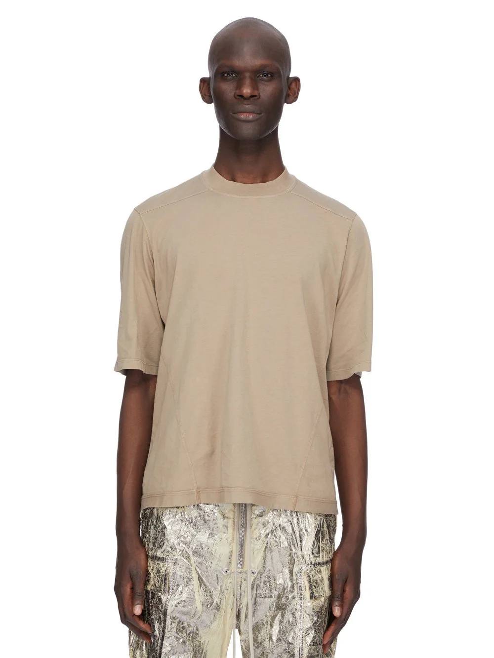 DRKSHDW FW25 CONCORDIANS WALRUS T IN DIRTY PEARL MEDIUM WEIGHT COTTON JERSEY THIS WALRUS T IS BELOW WAIST LENGTH WITH A SLIGHTLY BOXY CUT, SHORT SLEEVES AND A RIBBED CREW NECK. IT FEATURES SIDE SEAMS THAT SLOPE TO THE FRONT BODY, CREATING A CONCAVE FRONT HEM. IT HAS SEAMING ON THE UPPER SLEEVE AND SIGNATURE FRONT LEVEL SHOULDER SEAMS AND A CENTRE BACK SEAM. THIS MEDIUMWEIGHT COTTON JERSEY HAS A COMPACT AND DRY HANDFEEL. THIS JERSEY IS GARMENT DYED THIS FABRIC IS MADE USING GOTS CERTIFIED ORGANIC COTTON WHICH MEANS THE NATURAL FIBER IS GROWN WITHOUT HARMFUL CHEMICALS, LEAVING OUR SOIL, AIR AND WATER CLEANER FROM CONTAMINATES COLOR: DIRTY PEARL MATERIAL: 100% COTTON MODEL IS 189CM TALL ITEM IS AVAILABLE IN ONE SIZE