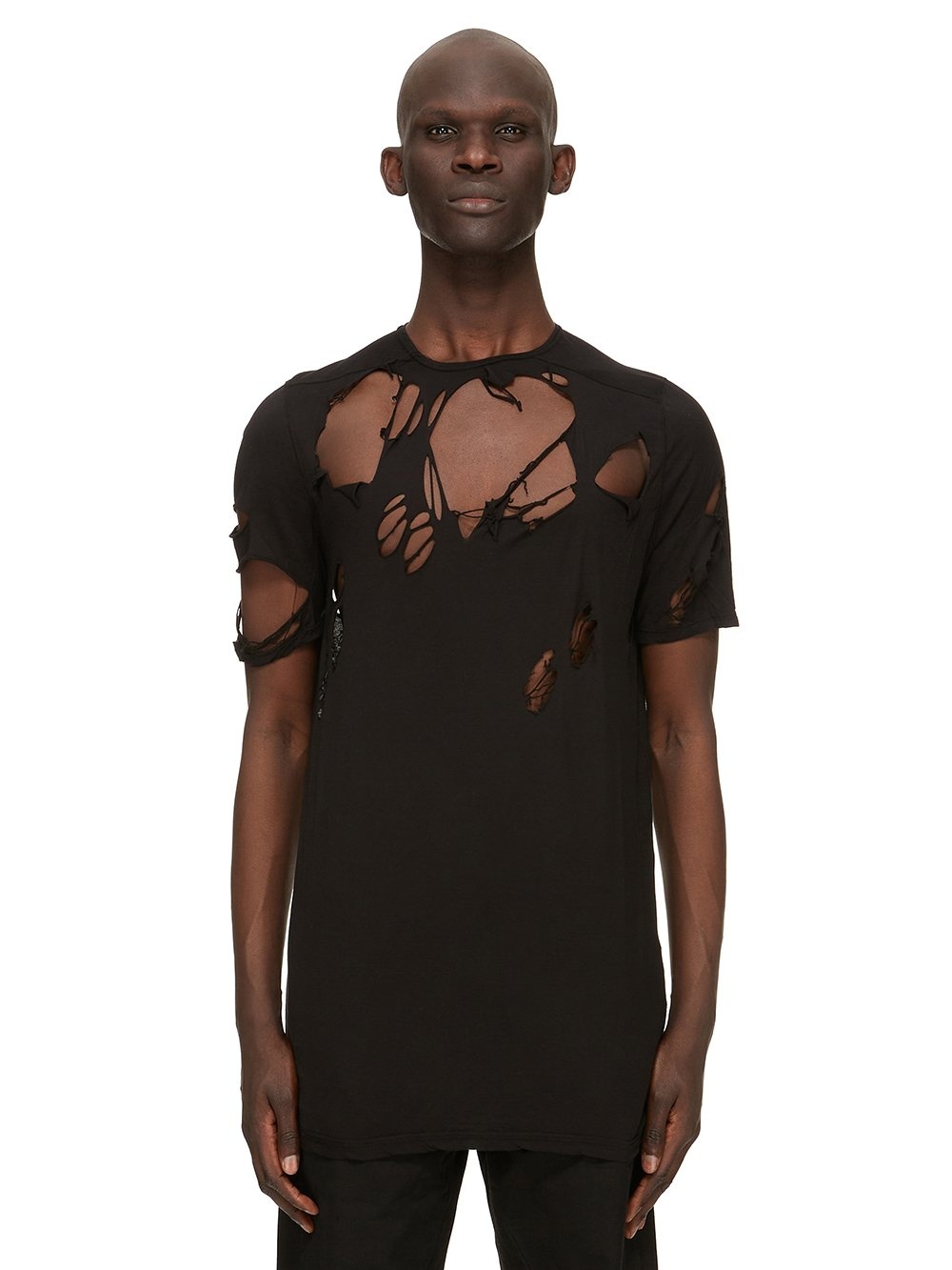 DRKSHDW SS25 HOLLYWOOD LEVEL T IN BLACK COTTON GAUZE JERSEY THIS LEVEL T IS BELOW HIP LENGTH, WITH SHORT SLEEVES AND A RIBBED CREW NECK. IT FEATURES SIGNATURE FRONT LEVEL SHOULDER SEAMS AND A CENTRE BACK SEAM THIS LIGHTWEIGHT AND AIRY COTTON GAUZE JERSEY IS SEMI TRANSPARENT AND HAVE A SOFT WASHED HANDFEEL. THIS JERSEY IS GARMENT DYED THIS FABRIC IS MADE USING GOTS CERTIFIED ORGANIC COTTON WHICH MEANS THE NATURAL FIBER IS GROWN WITHOUT HARMFUL CHEMICALS, LEAVING OUR SOIL, AIR AND WATER CLEANER FROM CONTAMINATES COLOR: BLACK MATERIAL: 100% COTTON MODEL IS 189CM TALL MODEL WEARS SIZE S