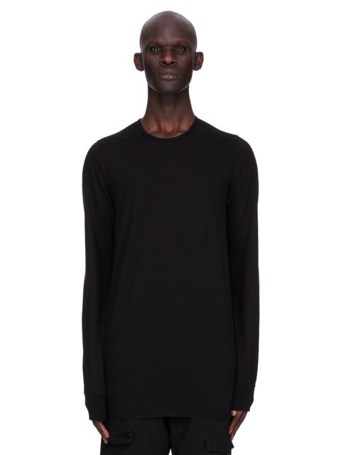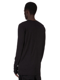 DRKSHDW FW25 CONCORDIANS LS LEVEL T IN BLACK COTTON GAUZE JERSEY THIS LEVEL T IS BELOW HIP LENGTH, WITH SHORT SLEEVES AND A RIBBED CREW NECK. IT FEATURES SIGNATURE FRONT LEVEL SHOULDER SEAMS AND A CENTRE BACK SEAM. THIS LIGHTWEIGHT AND AIRY COTTON GAUZE JERSEY IS SEMI TRANSPARENT AND HAVE A SOFT WASHED HANDFEEL. THIS JERSEY IS GARMENT DYED THIS FABRIC IS MADE USING GOTS CERTIFIED ORGANIC COTTON WHICH MEANS THE NATURAL FIBER IS GROWN WITHOUT HARMFUL CHEMICALS, LEAVING OUR SOIL, AIR AND WATER CLEANER FROM CONTAMINATES COLOR: BLACK MATERIAL: 100% COTTON MODEL IS 189CM TALL MODEL WEARS SIZE S
