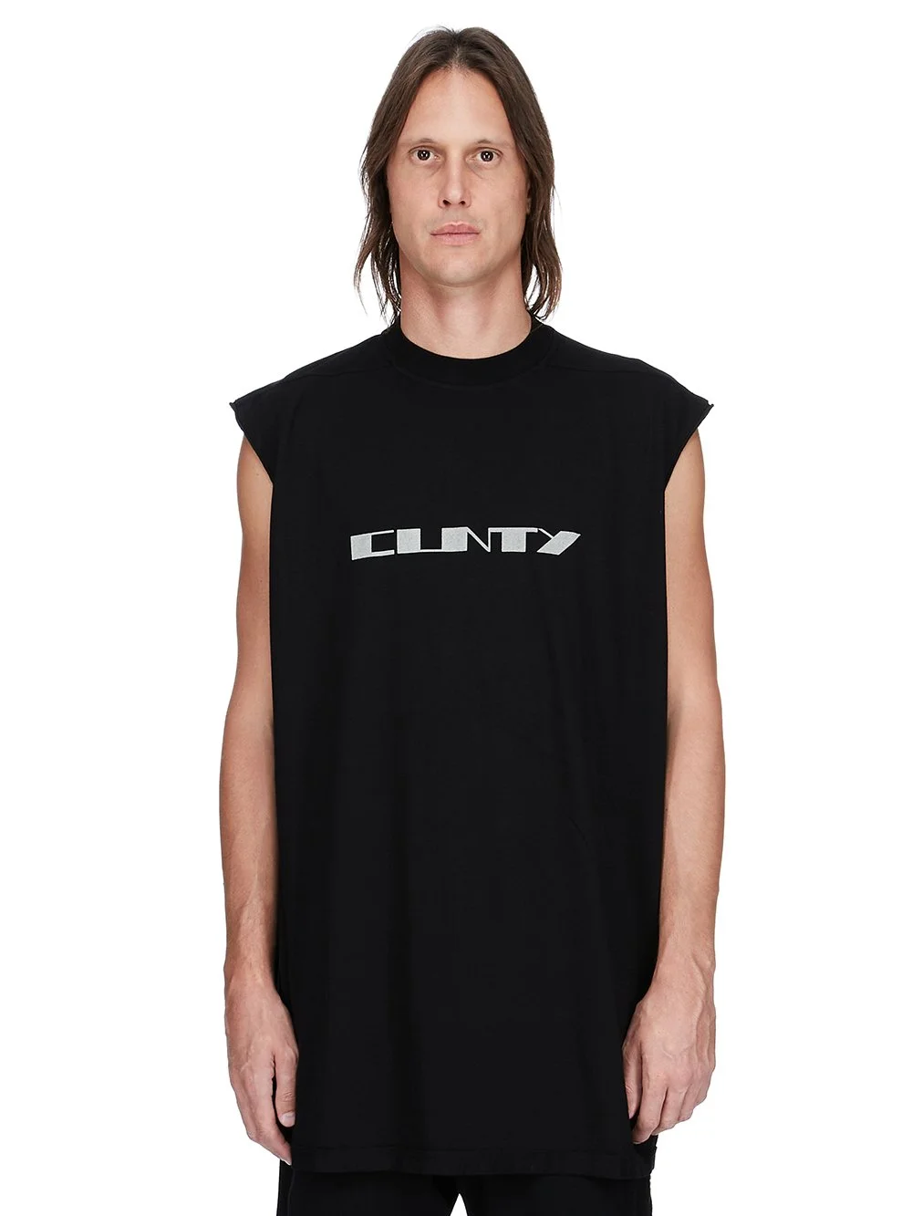 DRKSHDW FW25 CONCORDIANS TARP T IN BLACK/PEARL MEDIUM WEIGHT COTTON JERSEY THIS TARP T IS BELOW HIP LENGTH, WITH A LOOSE FIT. IT IS SLEEVELESS WITH WIDE SHOULDERS AND A RIBBED CREW NECK. IT FEATURES SIGNATURE FRONT LEVEL SHOULDER SEAMS AND SINGLE SEAM RUNNING DOWN THE CENTRE BACK SPINE. THIS MEDIUMWEIGHT COTTON JERSEY HAS A COMPACT AND DRY HANDFEEL. THIS JERSEY IS GARMENT DYED THIS FABRIC IS MADE USING GOTS CERTIFIED ORGANIC COTTON WHICH MEANS THE NATURAL FIBER IS GROWN WITHOUT HARMFUL CHEMICALS, LEAVING OUR SOIL, AIR AND WATER CLEANER FROM CONTAMINATES COLOR: BLACK/PEARL MATERIAL: 100% COTTON MODEL IS 189CM TALL MODEL WEARS SIZE S