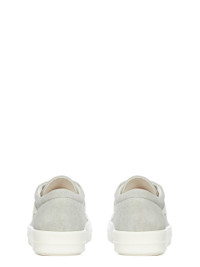 DRKSHDW SS26 TEMPLE VINTAGE SNEAKS IN SAND/MILK/MILK 13OZ SAND WASH DENIM AND SUEDE LEATHER THESE VINTAGE SNEAKS ARE UNDER-ANKLE HEIGHT AND FEATURE EIGHT EYELETS WITH LACES AND SHARK TOOTH SOLES. THEY HAVE A GRAPHIC LEATHER APPLIQUE ON THE SIDE FOOT AND CONTRAST STITCHING. THIS IS A COMBINATION OF 13OZ SAND WASH DENIM AND SUEDE LEATHER. THIS MEDIUMWEIGHT SAND WASH DENIM IS MADE ON A 13OZ JAPANESE BLACK AND NATURAL DENIM. THE READY GARMENT IS BLEACHED, OVERDYED IN THE DIRTY SAND COLORATION AND WASHED. THIS GARMENT IS TREATED IN AN ITALIAN WASH HOUSE BASED IN THE VENETO AREA OF ITALY, THAT PRODUCES IN SMALLER TREATMENT BATHS TO REDUCE WATER WASTE AND UTILIZE A WATER PURIFYING PROCESS THAT ENABLES THEM TO RECYCLE A PORTION OF THE WATER USED. ALL OF OUR DENIM WASHES ARE ZDHC CERTIFIED. COLOR: SAND/MILK/MILK MATERIAL:UPPER 100% COTTON LATERAL DETAILS 100% CALF LEATHER LINING 100% COTTON SOLE 100% THERMOPLASTIC RUBBER SOLE HEIGHT 3.5CM