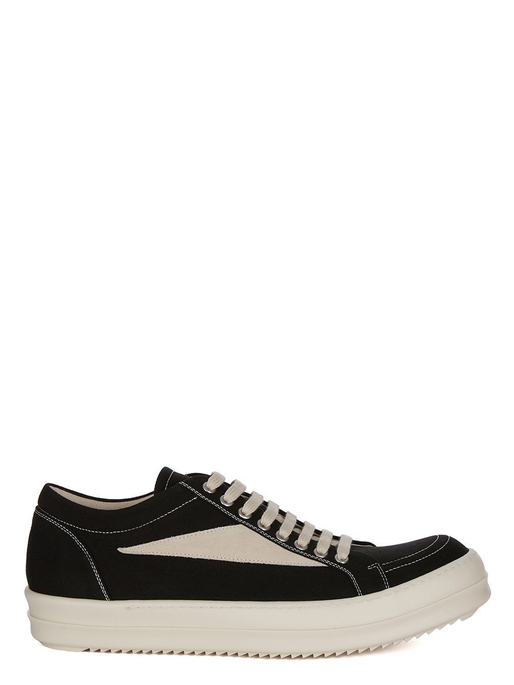DRKSHDW SS25 HOLLYWOOD VINTAGE SNEAKS IN BLACK/MILK COTTON CANVAS AND VELOUR SUEDE THESE VINTAGE SNEAKS ARE UNDER-ANKLE HEIGHT AND HAVE EIGHT EYELETS WITH LACES, TOE CAPS AND SHARK TOOTH SOLES. THEY FEATURE A GRAPHIC LEATHER APPLIQUE ON THE SIDE FOOT AND CONTRAST STITCHING THIS IS A COMBINATION OF COTTON CANVAS AND VELOUR SUEDE. THIS MEDIUMWEIGHT COTTON CANVAS IS COMPACT WITH A SOFT HANDFEEL. THIS GARMENT HAS BEEN GARMENT DYED. THIS FABRIC IS MADE USING GOTS CERTIFIED ORGANIC COTTON WHICH MEANS THE NATURAL FIBER IS GROWN WITHOUT HARMFUL CHEMICALS, LEAVING OUR SOIL, AIR AND WATER CLEANER FROM CONTAMINATES COLOR: BLACK/MILK MATERIAL: UPPER 100% COTTON LATERAL DETAILS 100% CALF LEATHER LINING 100% COTTON SOLE 100% THERMOPLASTIC RUBBER SOLE HEIGHT 3.5CM
