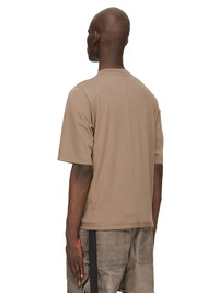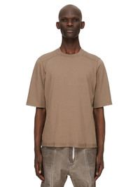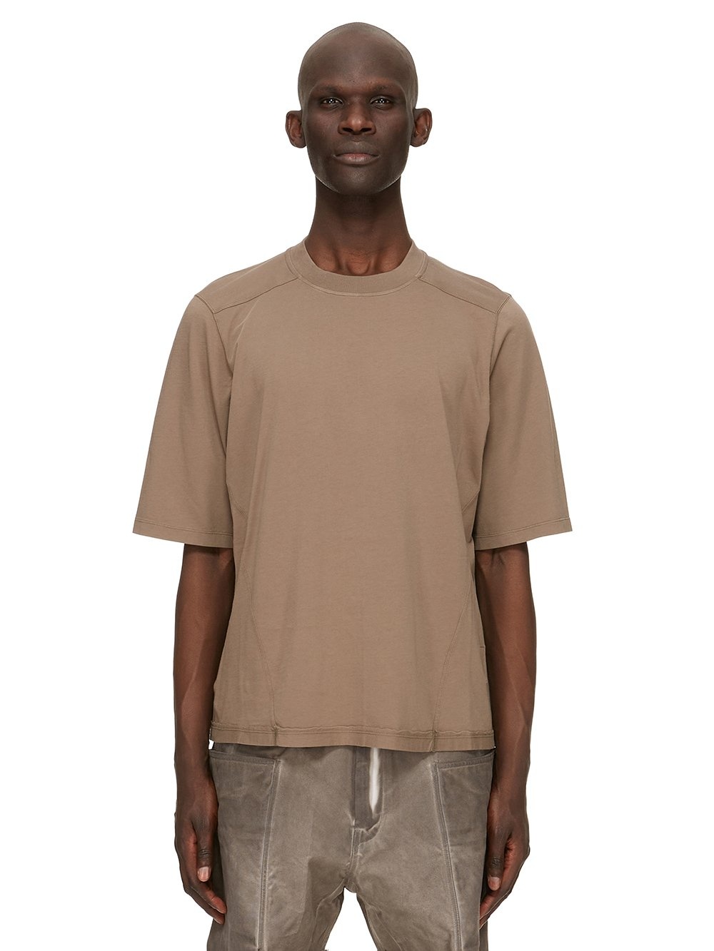 DRKSHDW SS25 HOLLYWOOD WALRUS T IN DUST MEDIUM WEIGHT COTTON JERSEY THIS WALRUS T IS BELOW WAIST LENGTH WITH A SLIGHTLY BOXY CUT, SHORT SLEEVES AND A RIBBED CREW NECK. IT FEATURES SIDE SEAMS THAT SLOPE TO THE FRONT BODY, CREATING A CONCAVE FRONT HEM. IT HAS SEAMING ON THE UPPER SLEEVE AND SIGNATURE FRONT LEVEL SHOULDER SEAMS AND A CENTRE BACK SEAM THIS MEDIUMWEIGHT COTTON JERSEY HAS A COMPACT AND DRY HANDFEEL. THIS JERSEY IS GARMENT DYEDTHIS FABRIC IS MADE USING GOTS CERTIFIED ORGANIC COTTON WHICH MEANS THE NATURAL FIBER IS GROWN WITHOUT HARMFUL CHEMICALS, LEAVING OUR SOIL, AIR AND WATER CLEANER FROM CONTAMINATES COLOR: DUST MATERIAL: 100% COTTON MODEL IS 189CM TALL ITEM IS AVAILABLE IN ONE SIZE