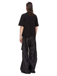 DRKSHDW FW25 CONCORDIANS WALRUS T IN BLACK DOUBLE BRUSHED JERSEY THIS WALRUS T IS BELOW WAIST LENGTH WITH A SLIGHTLY BOXY CUT, SHORT SLEEVES AND A RIBBED CREW NECK. IT FEATURES SIDE SEAMS THAT SLOPE TO THE FRONT BODY, CREATING A CONCAVE FRONT HEM. IT HAS SEAMING ON THE UPPER SLEEVE AND SIGNATURE FRONT LEVEL SHOULDER SEAMS AND A CENTRE BACK SEAM. THIS MEDIUMWEIGHT COTTON JERSEY IS BRUSHED ON BOTH SIDES WHICH GIVES THE FABRIC A SOFT AND PEACHY HANDFEEL. THIS JERSEY IS GARMENT DYED THIS FABRIC IS MADE USING GOTS CERTIFIED ORGANIC COTTON WHICH MEANS THE NATURAL FIBER IS GROWN WITHOUT HARMFUL CHEMICALS, LEAVING OUR SOIL, AIR AND WATER CLEANER FROM CONTAMINATES COLOR: BLACK MATERIAL: 100% COTTON MODEL IS 189CM TALL MODEL WEARS SIZE S