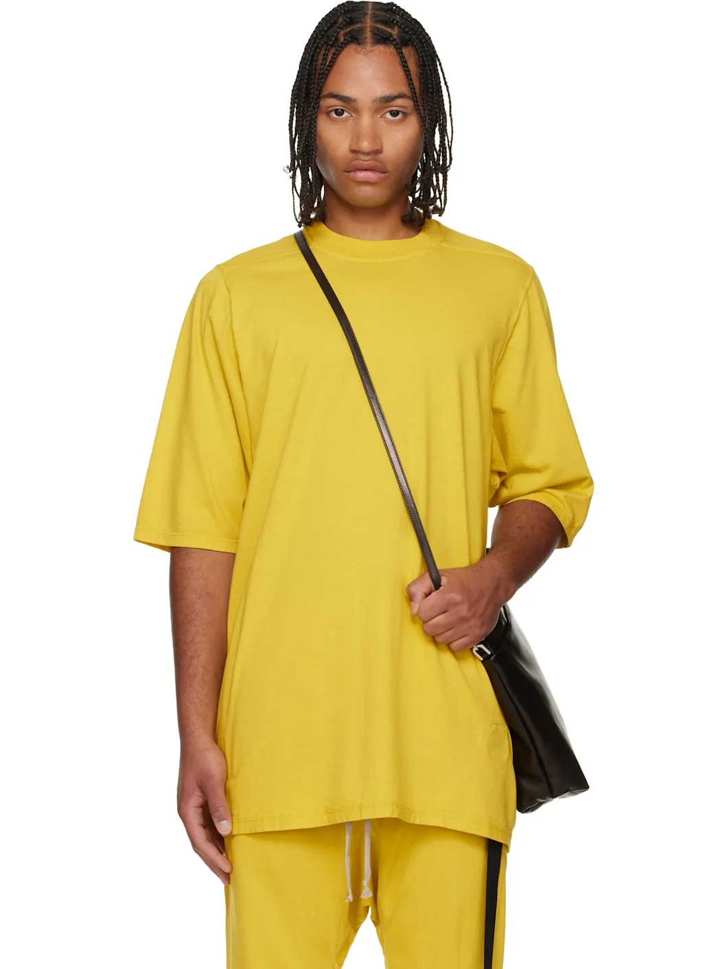 GOTS-certified organic cotton jersey T-shirt. · Garment-dyed · Oversized · Rib-knit crewneck · Saddle shoulders · Central seam at back · Integrated logo-woven strap at interior Supplier color: Lemon 100% cotton. Made in Italy 252126M213045