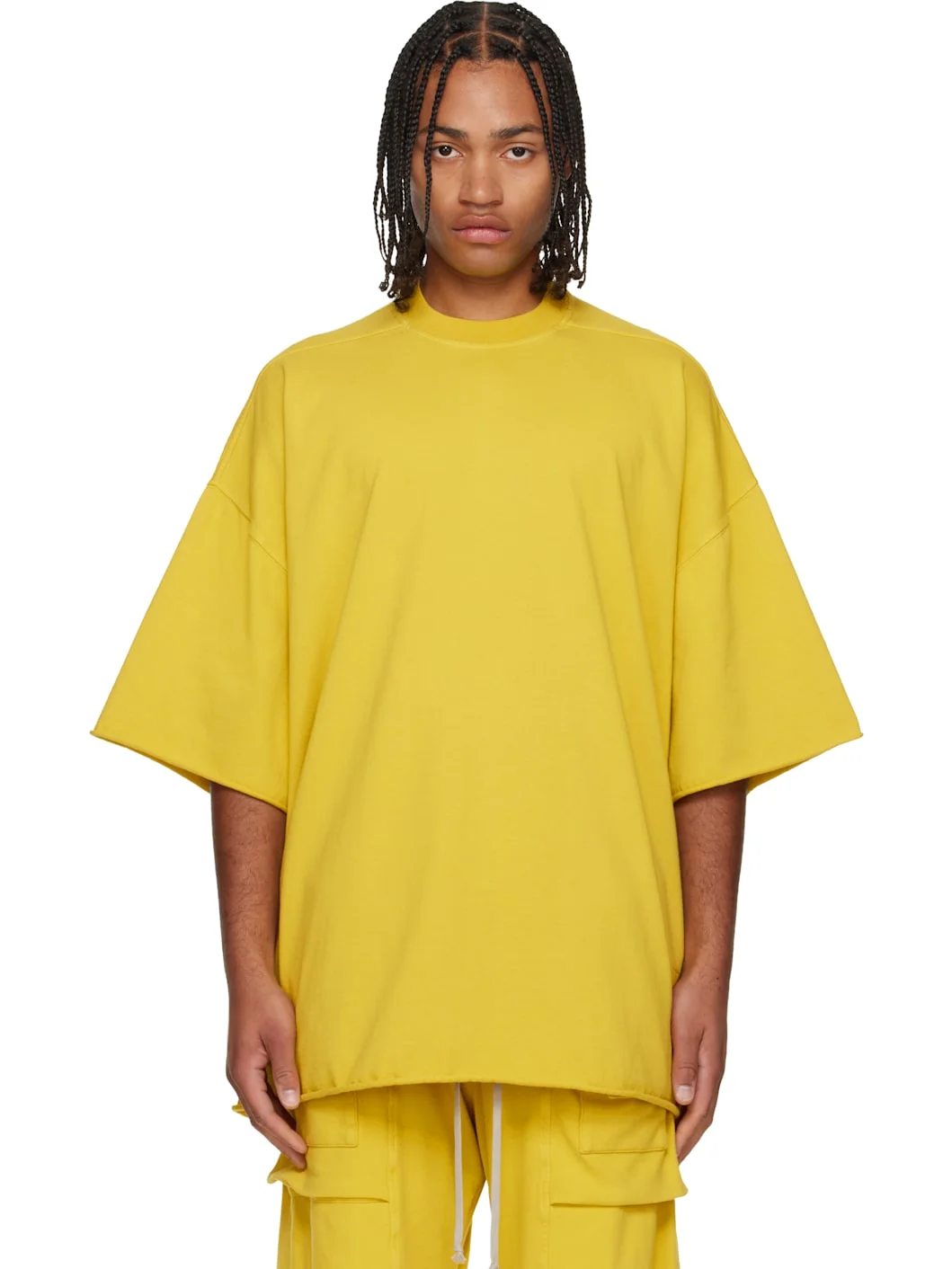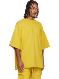 Heavyweight GOTS-certified organic cotton jersey T-shirt. · Garment-dyed · Oversized · Rib-knit crewneck · Rolled edge at hem and cuffs · Saddle shoulders · Central seam at back · Integrated logo-woven strap at interior Supplier color: Lemon 100% cotton. Made in Italy 252126M213040