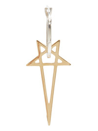 RICK OWENS PENTAGRAM EARRING IN GOLD/SILVER GOLD AND SILVER THIS PENTAGRAM EARRING HAS A SMALL PENTAGRAM HANGING FROM AN OVAL SHAPED EARRING. IT HAS THE RICK OWENS LOGO ENGRAVED ON THE SIDE FACE. THIS JEWELRY PIECE IS MADE FROM SOLID GOLD WITH A STERLING SILVER SNAKE EARRING - COLOR: GOLD/SILVER - MATERIAL: CHARM 100% SILVER METAL - EAR HOOPS 100% GOLD - CHARM LENGTH 3CM / EARRING LENGTH 4CM AVAILABLE IN ONE SIZE