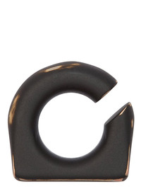 RICK OWENS ROUND PRONG EAR CUFF IN BRASSED BLACK THIS ROUND PRONG EARCUFF IS A DOUGHNUT SHAPED CUFF WITH TWO BEVELED EDGES INSPIRED BY THE PRONG BENCH FROM THE RICK OWENS FURNITURE COLLECTION. IT HAS THE RICK OWENS LOGO ENGRAVED ON THE SIDE COLOR: BRASSED BLACK MATERIAL: 100% BRASS AVAILABLE IN ONE SIZE IT IS SOLD AS A SINGLE EAR CUFF