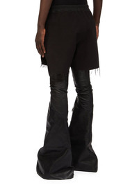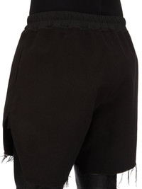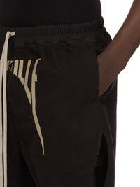 RICK OWENS FW24 PORTERVILLE RUNWAY BOXERS IN BLACK/PEARL BRUSHED HEAVY TWILL THESE BOXERS ARE MID-THIGH LENGTH. THEY HAVE AN ELASTICIZED WAISTBAND WITH DRAWSTRING, A SLIGHTLY DROPPED CROTCH, SIDE WELT POCKETS AND BEVELED SIDE SLITS THIS MEDIUMWEIGHT COTTON TWILL FABRIC HAS A SOFT BRUSHED HANDFEEL. THIS FABRIC IS MADE USING GOTS CERTIFIED ORGANIC COTTON WHICH MEANS THE NATURAL FIBER IS GROWN WITHOUT HARMFUL CHEMICALS, LEAVING OUR SOIL, AIR AND WATER CLEANER FROM CONTAMINATES - COLOR: BLACK/PEARL - MATERIAL: 100% COTTON - BAND 97% COTTON + 3% ELASTANE - EMBROIDERY 100% POLYESTER - MODEL IS 189CM TALL - MODEL WEARS SIZE 48