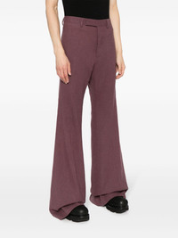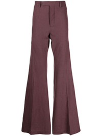 flared wool trousers Highlights - Amethyst purple - Wool - Pressed crease - Flared design - High waist - Concealed fly and button fastening - Belt loops - Two side inset pockets - Two rear button-fastening jetted pockets - Wide leg - Floor-length - Straight hem Made in Italy Composition Lining: Cupro 100% Outer: Wool 100% SIZE & FIT Model measurements Height 6 ft 2 in(1.87 m) Bust/Chest 34.25 in(87 cm) Hips 36.22 in(92 cm) Waist 29.52 in(75 cm) FittingInformation Designed with a flared hem, offering a slim fit over the leg, widening towards the hem Made from a midweight non-stretch fabric This piece fits true to size – take your usual size Washing instructions Dry Clean Only