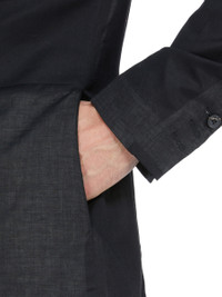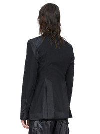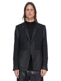 RICK OWENS SS26 TEMPLE FOGPOCKET SOFT SOFT BLAZER IN BLACK COTTON VOILE THIS FOGPOCKET SOFT SOFT BLAZER IS BELOW HIP LENGTH WITH LONG SLEEVES AND A CLASSIC SOFT SHOULDER PAD. IT HAS A SLIM LAPEL WITH SINGLE BUTTON FRONT CLOSURE, TWO FOG BREAST POCKETS WITH A VERTICAL OPENING AND INTERNAL SNAP AND TWO SIDE SEAM POCKETS. IT HAS TWO SIDE BACK VENTS AND FIVE-BUTTON CUFFS. IT IS FULLY LINED WITH TWO INTERNAL BUTTONED POCKETS. THIS LIGHTWEIGHT AND SEMITRANSPARENT COTTON VOILE HAS A SOFT HANDFEEL. THIS FABRIC IS MADE USING GOTS CERTIFIED ORGANIC COTTON WHICH MEANS THE NATURAL FIBRE IS GROWN WITHOUT HARMFUL CHEMICALS, LEAVING OUR SOIL, AIR AND WATER CLEANER FROM CONTAMINATES. COLOR: BLACK MATERIAL:100% COTTON YOKE AND SLEEVES LINING 100% CUPRO BUTTONS 100% BUFFALO HORN MODEL IS 189CM TALL MODEL WEARS SIZE 48