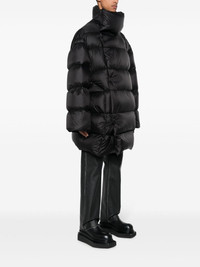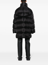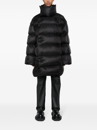 funnel-neck quilted down coat Highlights - Black - Feather down - Quilted - Padded design - Strap detailing - Funnel neck - Concealed press-stud fastening - Long sleeves - Ribbed cuffs - Two side inset pockets - Straight hem - Above-knee length Made in Italy Composition Outer: Wool 100%, Polyamide 100% Lining: Cotton 100%, Feather Down 100% SIZE & FIT Model measurements Height 6 ft 2 in(1.87 m) Bust/Chest 38.18 in(97 cm) Hips 36.61 in(93 cm) Waist 29.13 in(74 cm) FittingInformation Designed for an oversized fit, offering additional room throughout Made from a padded non-stretch fabric, giving it no natural elasticity This piece fits true to size – take your usual size Washing instructions Dry Clean Only