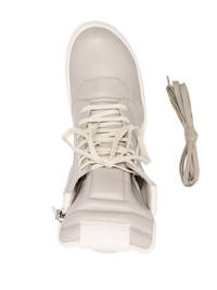 Geobasket high-top leather sneakers Highlights - Light grey/milk white - Calf leather - Panelled design - Quilted panels - Extended tongue - Silver-tone hardware - Interchangeable laces - Round toe - Perforated toebox - Front lace-up fastening - Side zip fastening - Pull-tab at the tongue - Padded ankle - Leather lining - Branded insole - Flat rubber sole - This piece comes complete with a protective dust bag. Made in Italy Composition Sole: Rubber 100% Outer: Calf Leather 100% Lining: Calf Leather 100% SIZE & FIT Measurement CIRCUMFERENCE 1.37 in(3.5 cm) HEEL 5.31 in(13.5 cm) PLATFORM 1.37 in(3.5 cm)