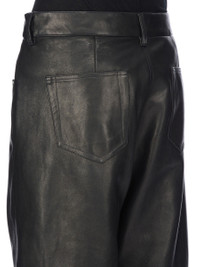 RICK OWENS FW25 CONCORDIANS GETH JEANS IN BLACK VEG NAPPA LAMB THESE GETH JEANS ARE A FULL LENGTH 5 POCKET JEAN WITH A LOW-RISE AND WIDE FIT. THEY HAVE A SILVER BUTTON FLY, BELT LOOPS AND POCKET RIVETS. THIS MEDIUMWEIGHT LAMB LEATHER IS VEG TANNED AND FINISHED USING NATURAL WAXES AND ANILINE WHICH MAKES A SUPPLE HANDFEEL. BECAUSE THIS SKIN IS NAKED, NOT FINISHED USING ANY PIGMENTS COVERING THE SKIN, NATURAL MARKINGS AND SHADINGS ARE VISIBLE WHICH MAKES EACH SKIN AND PRODUCT UNIQUE. VEG TANNING MEANS ONLY VEGETAL AND NATURAL TANNINS WERE USED IN THE PROCESS OF TANNING AND PRESERVING THIS LEATHER. COLOR: BLACK MATERIAL: 100% LAMB LEATHER LINING 100% COTTON MODEL IS 189CM TALL MODEL WEARS SIZE 31