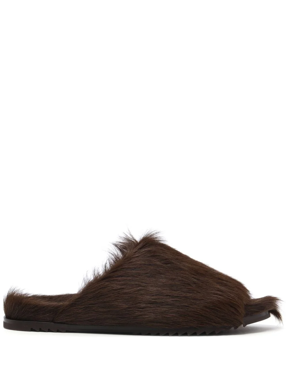 Granolas open-toe slippers Highlights - Brown - Calf hair - Round open toe - Slip-on style - Branded insole - Flat rubber sole Made in Italy Composition Sole: Rubber 100% Lining: Calf Hair 100% Outer: Calf Hair 100%