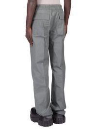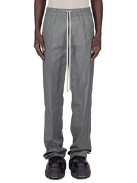 RICK OWENS FW25 CONCORDIANS DIETRICH DRAWSTRING IN WASHED INDIGO HEAVY COTTON POPLIN THESE DIETRICH DRAWSTRINGS ARE FULL-LENGTH WITH A LOOSE STRAIGHT LEG. THEY HAVE AN ELASTICIZED WAISTBAND WITH DRAWSTRING, AND A STITCHED FLY. THEY HAVE SIDE SEAM POCKETS AND TWO REAR SQUARE PATCH POCKETS WITH FLAPS THIS MEDIUMWEIGHT COTTON POPLIN HAS A CRISP HANDFEEL AND WASHED FINISH THIS FABRIC IS MADE USING GOTS CERTIFIED ORGANIC COTTON WHICH MEANS THE NATURAL FIBER IS GROWN WITHOUT HARMFUL CHEMICALS, LEAVING OUR SOIL, AIR AND WATER CLEANER FROM CONTAMINATES COLOR: WASHED INDIGO MATERIAL: 97% COTTON + 3% ELASTANE BUTTONS 100% BUFFALO HORN MODEL IS 189CM TALL MODEL WEARS SIZE 48