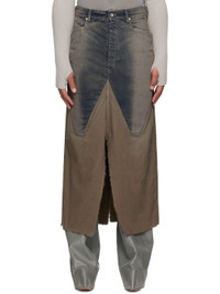 Slub 14 oz non-stretch organic cotton denim and poplin skirt. · GOTS- and ZDHC-certified · Paneled construction · Fading and subtle distressing throughout · Belt loops · Four-pocket styling · Button fly · Central vent at front and back hem · Raw edge at hem Supplier color: Darkdust degrade Body: 100% cotton. Trim: 52% polyester, 48% cotton. Made in Italy 252232M186008
