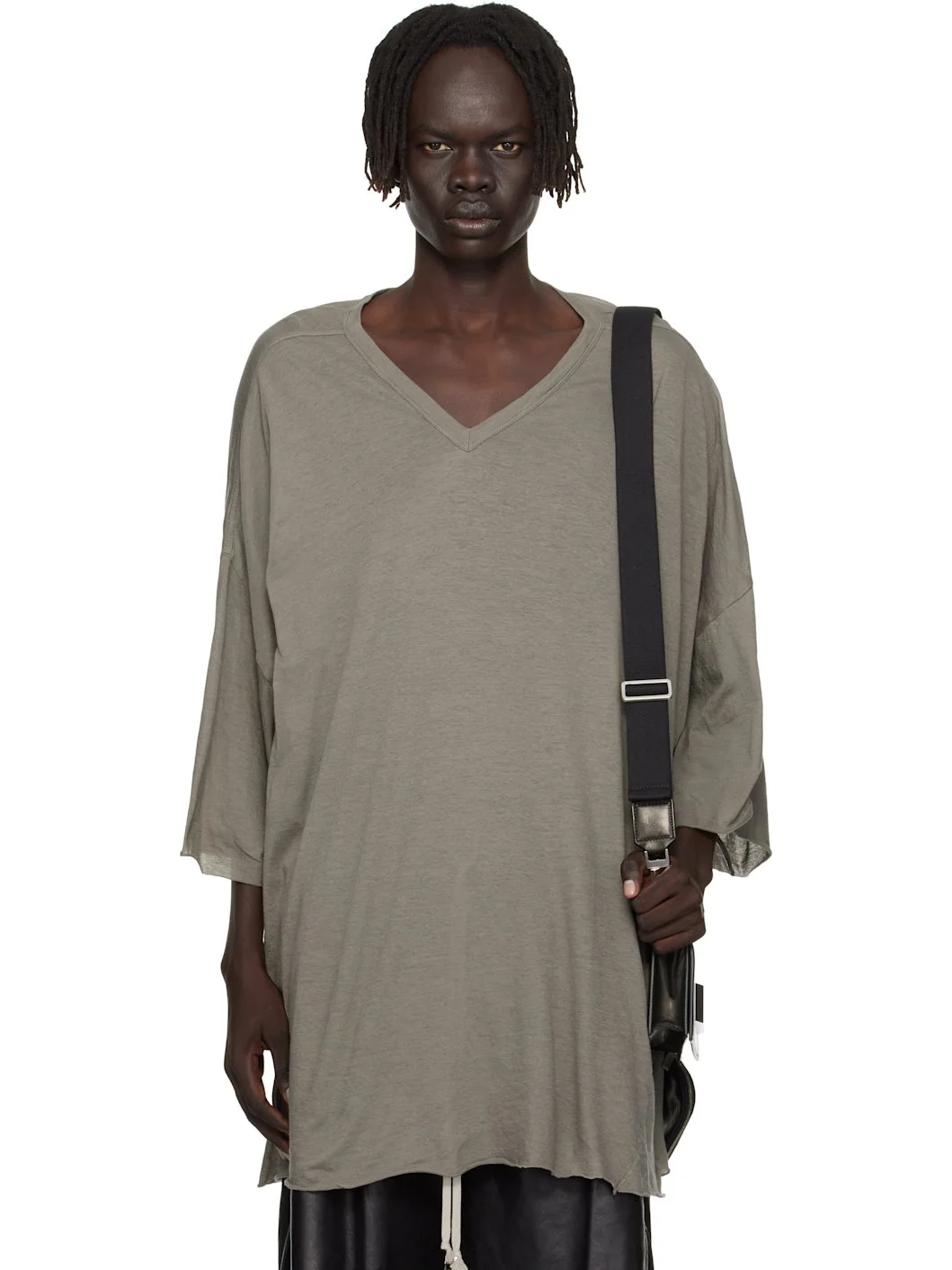 Organic cotton jersey T-shirt. · GOTS-certified organic cotton · Rib-knit V-neck · Raw edge at hem and cuffs · Twisted side seams · Offset seam at dropped shoulders Supplier color: Dust 100% organic cotton. Made in Italy 252232M213152