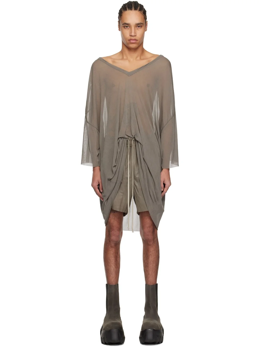 Sheer viscose crepe jersey T-shirt. · Plunging V-neck · Dropped shoulders · Rolled raw edge at hem and cuffs Supplier color: Dust 100% viscose. Made in Italy 251232M213142