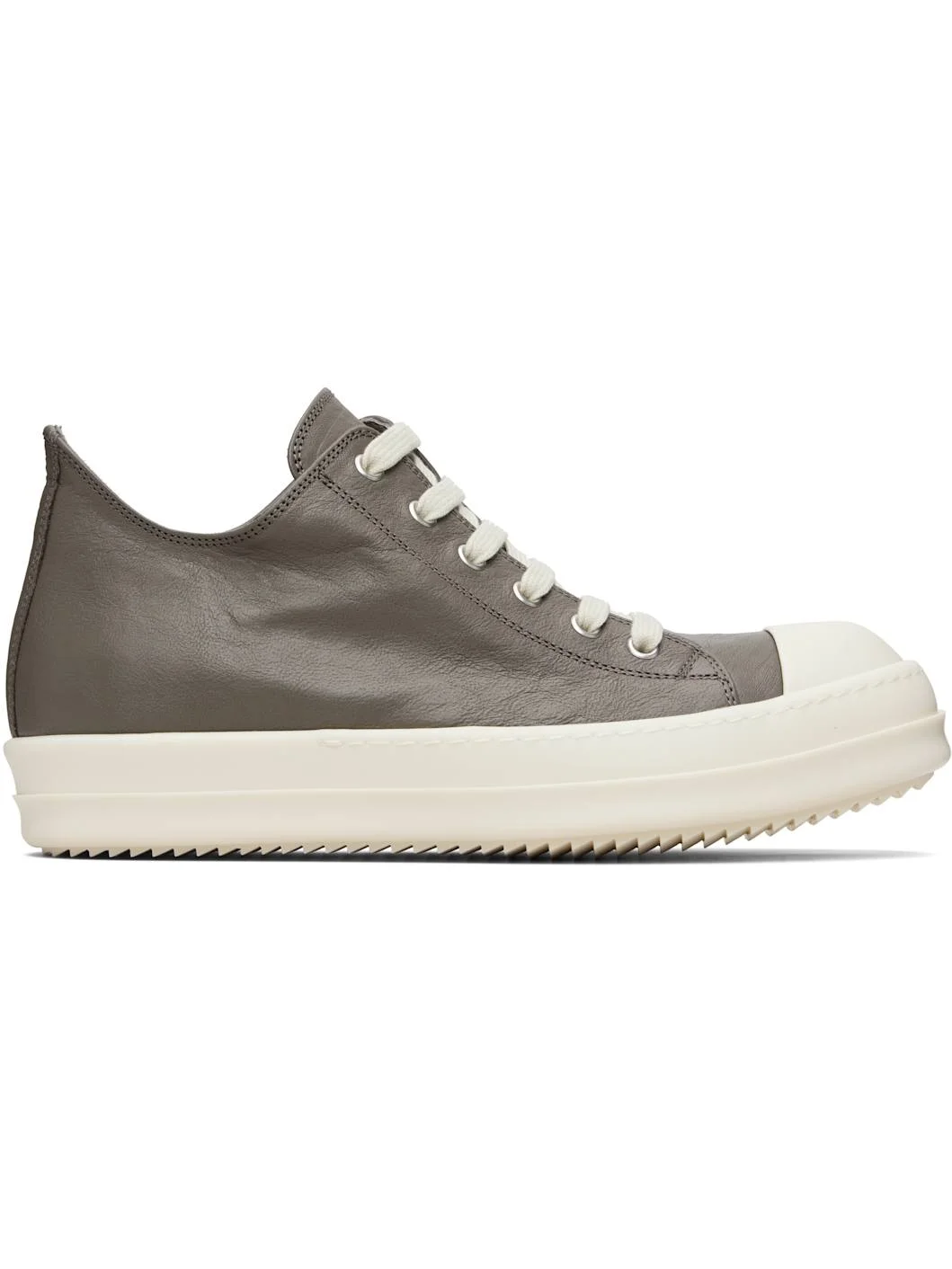 Low-top grained sheepskin sneakers. · Leather-cap toe · Lace-up closure · Metal eyelets at inner side · Buffed calfskin lining · Treaded rubber sole Supplier color: Dust/Milk/Milk Upper: sheepskin. Sole: rubber. Made in Italy 261232M237055