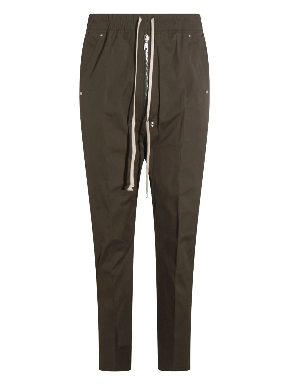 drawstring zip-fly drop-crotch trousers Highlights - Dark brown - Zip fly - Drawstring fastening - Side pockets - Straight leg Imported Composition Cotton 97%, Elastane 3% Washing instructions Read Manufacturer Guidelines