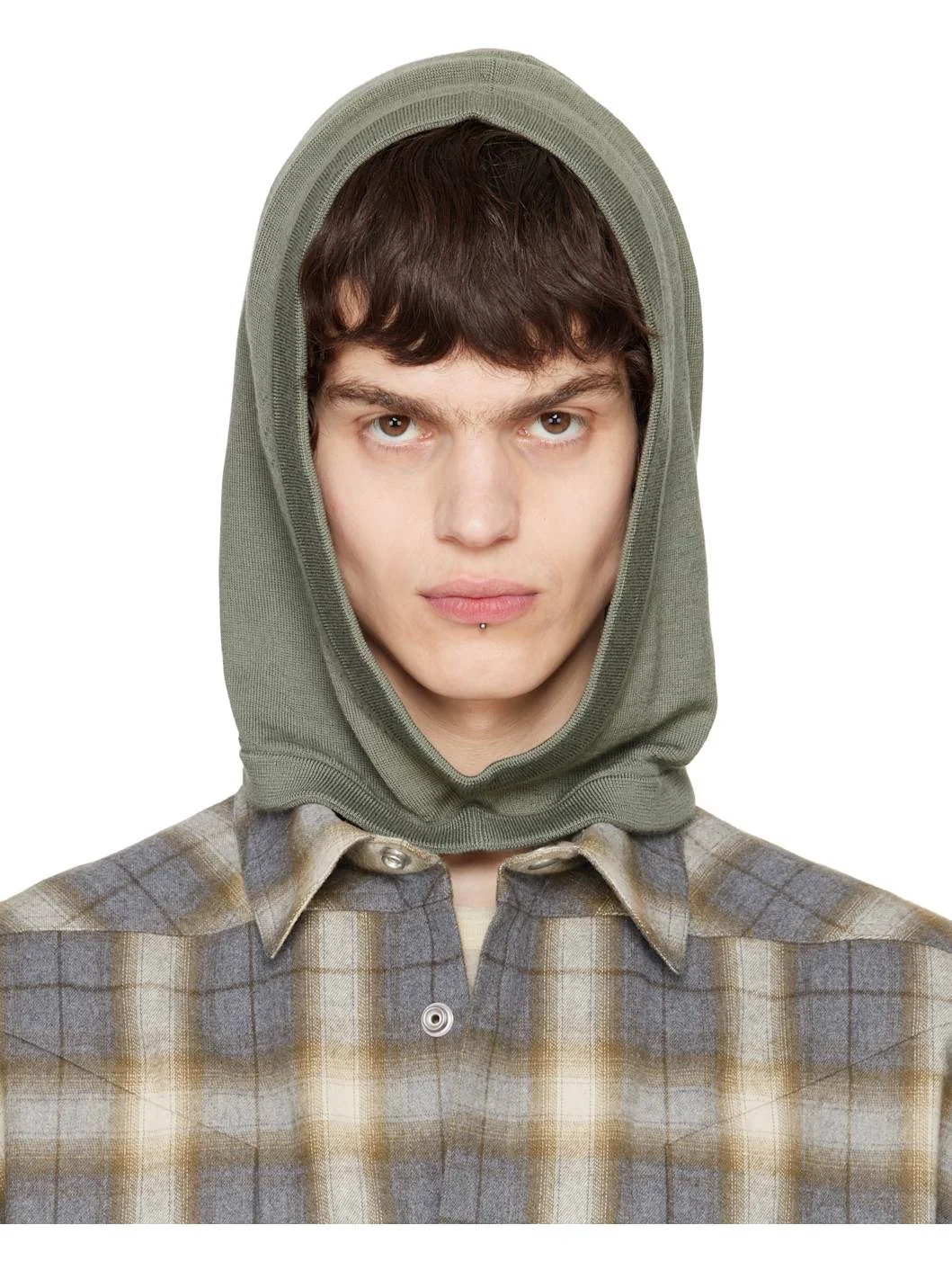Brushed knit cashmere hood in green. · Lightweight · Rib-knit edge at face and collar Supplier color: Celadon 100% cashmere. Made in Italy 251232M138017