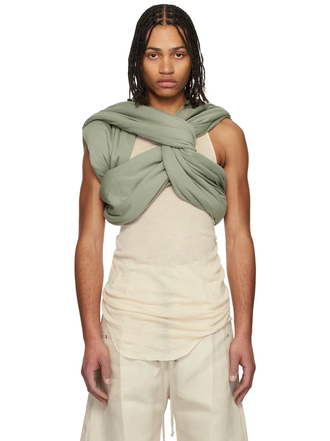 Twisted and padded cotton jersey top. · GOTS-certified organic · Asymmetrical and layered construction Supplier color: Celadon Body: 100% organic cotton. Fill: 100% polyester. Made in Italy 251232M213004
