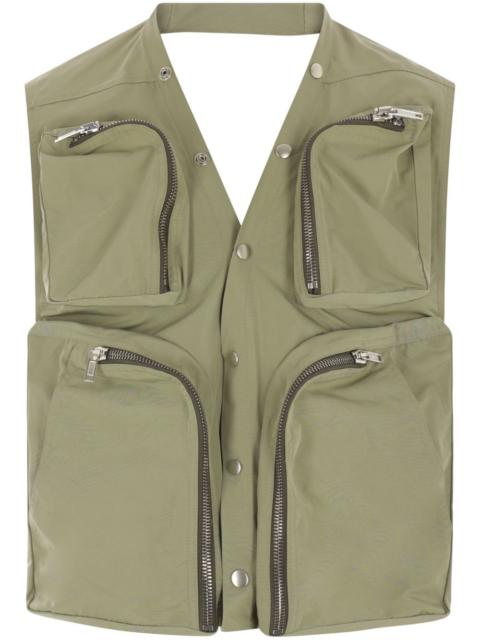 cargo vest Highlights - Khaki - Front press-stud fastening - Rear press-stud fastening - Open back - Front zip fastening pockets Made in Italy Composition Cotton 97%, Spandex/Elastane 3% SIZE & FIT FittingInformation Designed for a relaxed fit, this piece allows for comfort and movement when worn The adjustable tabs allow for fitted preferences Made from a midweight non-stretch fabric