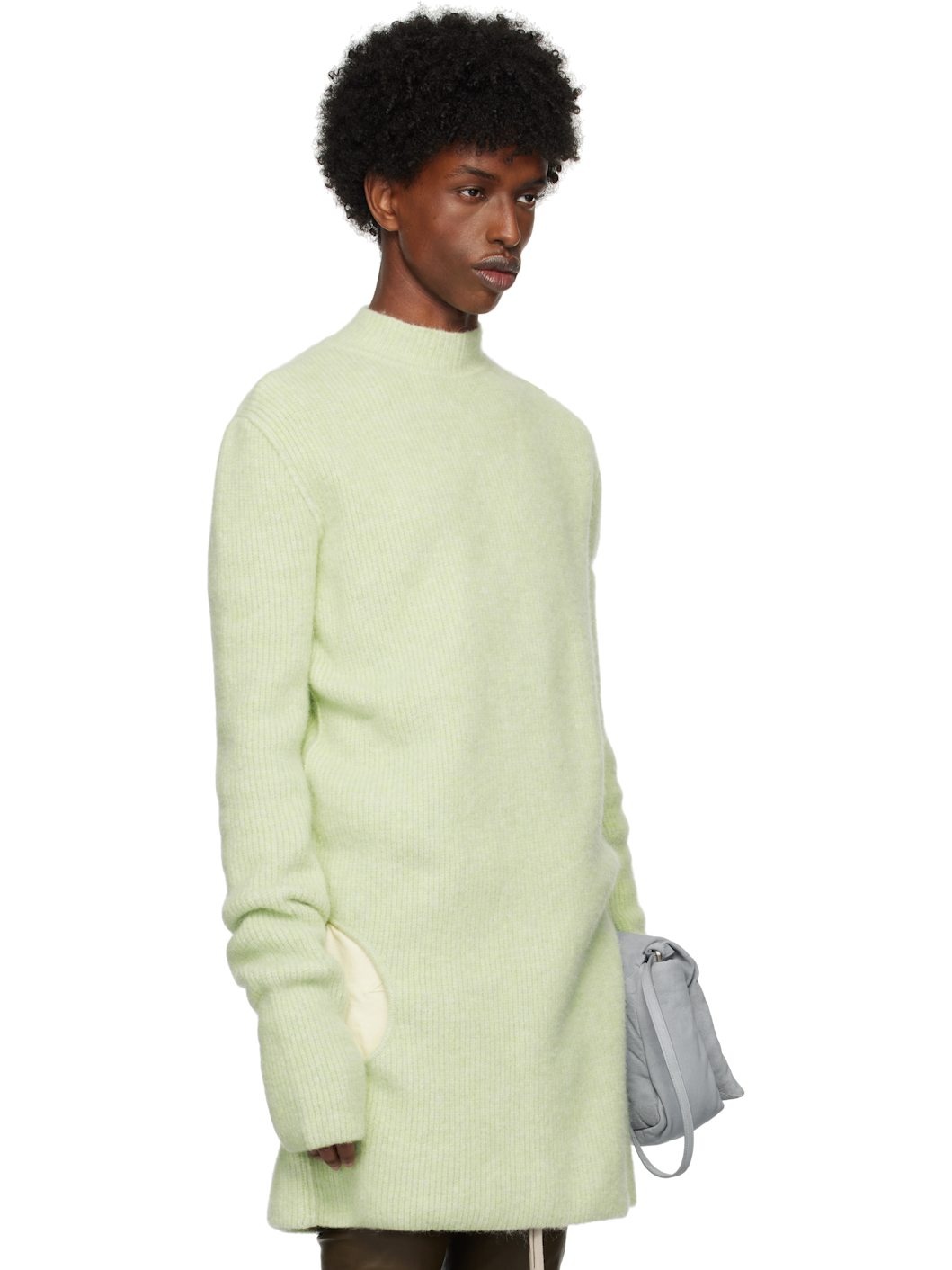 Brushed knit stretch alpaca-blend sweater. · Rib-knit mock neck · Cutout at side seam · Pinched seam at armscyes · Utility pocket at sleeve · Central garter-stitch stripe at back Supplier color: Pale green