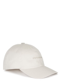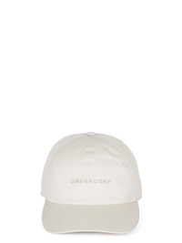 RICK OWENS SS25 HOLLYWOOD BASEBALL CAP IN DINGE/PEARL OWENSCORP EMBROIDERED HEAVY COTTON POPLIN THIS BASEBALL CAP HAS A SLIGHTLY CURVED BRIM WITH STITCHING, AN ADJUSTABLE BACK STRAP AND EYELET VENTS ON THE CROWN OF THE HEADTHIS VERSION HAS THE WORD 'OWENSCORP' EMBROIDERED ON THE CENTER FRONT. THIS MEDIUMWEIGHT COTTON POPLIN HAS A CRISP HANDFEEL AND WASHED FINISH THIS FABRIC IS MADE USING GOTS CERTIFIED ORGANIC COTTON WHICH MEANS THE NATURAL FIBER IS GROWN WITHOUT HARMFUL CHEMICALS, LEAVING OUR SOIL, AIR AND WATER CLEANER FROM CONTAMINATES THIS PRODUCT IS EMBELLISHED WITH OUR SEASONAL OWENSCORP EMBROIDERY COLOR: DINGE/PEARL MATERIAL: 97% COTTON + 3% ELASTANE LINING 100% COTTON EMBROIDERY 100% POLYESTER ITEM IS AVAILABLE IN SIZE S