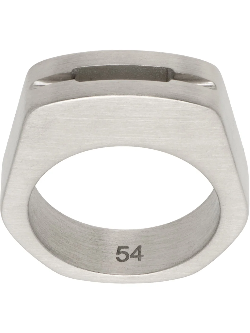 Signet ring in silver-tone brass. · Cutout at face · Logo engraved at bottom Supplier color: Palladio Brass. Made in Italy 261232M147002