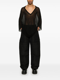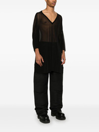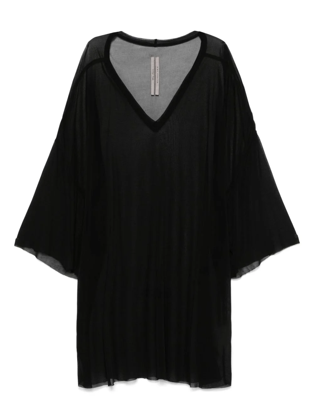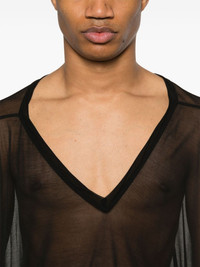 V Tommy T-shirt Highlights - Black - Semi-sheer construction - Drop shoulder - Raw-cut edge Made in Italy Composition FSC Viscose 100% SIZE & FIT Model measurements Height 6 ft 2 in(1.89 m) Bust/Chest 36.22 in(92 cm) Hips 35.82 in(91 cm) Waist 28.54 in(72.5 cm) Measurement CHEST 62.99 in(160 cm) LENGTH 35.43 in(90 cm) Shoulder Width 33.46 in(85 cm) SLEEVE LENGTH 13.77 in(35 cm) WAIST 62.99 in(160 cm) FittingInformation Designed for an oversized fit, offering additional room throughout Made from a lightweight non-stretch fabric, this piece offers minimal elasticity when worn This piece is only produced in one size; for help with this item's sizing, refer to our product measurements