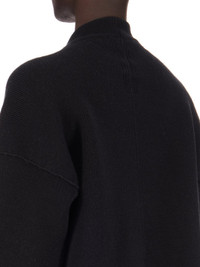 RICK OWENS FW24 PORTERVILLE PORTERVILLE JUMBO CREWNECK IN BLACK/PEARL WOOL KNIT THIS JUMBO CREWNECK IS BELOW MID CALF LENGTH, WITH A JUMBO OVERSIZED FIT. IT HAS A WIDE BODY AND SHOULDERS WHICH FALL CREATING SHORT SLEEVES WITH A DROPPED ARMHOLE. IT HAS A HIGH BOAT NECK AND SIGNATURE KNIT CHANNEL RUNNING DOWN THE CENTRE BACK SPINE THIS HEAVY WEIGHT AND COMPACT KNIT IS HAS A CLASSIC STITCH AND A SOFT HANDFEEL COLOR: BLACK/PEARL MATERIAL: 100% NEW WOOL MODEL IS 189CM TALL ITEM IS AVAILABLE IN ONE SIZE