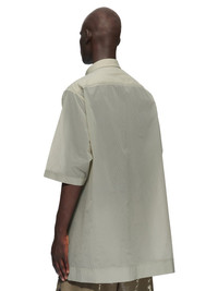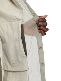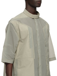 RICK OWENS SS23 EDFU EDFU MAGNUM IN GRAPHENE RIP STOP THIS EDFU MAGNUM SHIRT IS MID THIGH LENGTH WITH ELBOW LENGTH SLEEVES AND A WIDE BOXY FIT. IT HAS A CENTRE FRONT OPENING WITH CONCEALED SNAP CLOSURES, AND A STRUCTURED PRIESTS' COLLAR. IT HAS A HEMLINE WITH BEVELED SIDE SPLITS AND TWO FOG BREAST POCKETS WITH A VERTICAL OPENING AND CONCEALED SNAPS, TWO SIDE FRONT POCKETS AND TOPSTITCHING. IT FEATURES THE SIGNATURE LEVEL SHOULDER SEAMSIT IS PARTIALLY LINED AND HAS TWO INTERNAL ZIPPERED POCKETS THIS LIGHTWEIGHT AND SEMI-TRANSPARENT TECHNICAL MATERIAL IS MADE USING GRAPHENE, A CARBON FIBER THAT ADDS EXTRA TEAR STRENGTH. - COLOR: PEARL - MATERIAL: 100% NYLON - INSIDE POCKETS + YOKE LINING 100% COTTON - MODEL IS WEARING SIZE 48 - MODEL IS 189 CM TALL