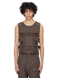 RICK OWENS FW25 CONCORDIANS BONOTTO CAPSULE AMMO VEST IN ASH COTTON WHIPCORD THIS AMMO VEST IS WAIST LENGTH AND SLEEVELESS. IT SLIPS OVER THE HEAD AND SECURES IN PLACE WITH SIDE BUCKLES. IT FEATURES A RNG ON EACH FRONT SHOULDER AND BOTH HORIZONTAL AND VERTICAL FRONT POCKETS AS WELL AS STRIPS OF PALS WEBBING, BACK AND FRONT, ENABLING ATTACHMENTS TO BE ADDED FROM OUR ACCESSORIES RANGE. THIS MEDIUMWEIGHT COTTON WHIPCORD HAS A VISIBLE TWILL STRUCTURE AND A DRY HANDFEEL. IT IS MADE USING RAW COTTON YARNS MEANING IRREGULAR SLUBS ARE VISIBLE THROUGHOUT THE WEAVE. THE FABRIC HAS MINIMAL FINISHING IN ORDER TO KEEP THE NATURAL CHARACTERISTICS OF THE COTTON YARN. THIS FABRIC WAS WOVEN ON A 1950’S VINTAGE SHUTTLE LOOM BY BONOTTO, A 4TH GENERATION TEXTILE MILL FOUNDED IN 1912 SITUATED JUST BELOW THE PREALPS IN VENETO, ITALY. COLOR: ASH MATERIAL: 100% COTTON BODY LINING 100% COTTON POCKETS LINING 100% POLYESTER MODEL IS 189CM TALL MODEL WEARS SIZE 46