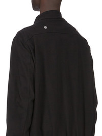 RICK OWENS SS26 TEMPLE HOLLYWOOD FLIGHT IN BLACK HEAVY JERSEY THIS HOLLYWOOD FLIGHT IS BELOW HIP LENGTH WITH LONG SLEEVES. IT HAS AN OFF-CENTRE ZIPPER WITH TOP SNAP, A SMALL, ROUNDED, FUNNEL NECK AND RIBBED CUFF AND HEM, AND SIDE SNAP POCKETS AND A ZIPPERED POCKET ON THE LEFT FOREARM. IT FEATURES A DOUBLE SNAP DETAIL ON THE BACK YOKE THIS HEAVYWEIGHT JERSEY IS COMPACT WITH A DRY HANDFEEL THIS JERSEY IS MADE USING GOTS CERTIFIED ORGANIC COTTON WHICH MEANS THE NATURAL FIBER IS GROWN WITHOUT HARMFUL CHEMICALS, LEAVING OUR SOIL, AIR AND WATER CLEANER FROM CONTAMINATES COLOR: BLACK MATERIAL: 100% COTTON MODEL IS 189CM TALL MODEL WEARS SIZE S
