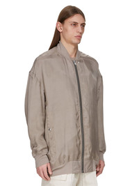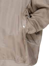 RICK OWENS SS25 HOLLYWOOD JUMBO FLIGHT IN FLESH CUPRO JAPONETTE THIS PETER FLIGHT IS BELOW-HIP LENGTH WITH AN OVERSIZED FIT. IT HAS A CENTER FRONT ZIPPER WITH PLACKET AND TOP SNAP, LONG SLEEVES AND LOW SHOULDERS WITH A DROPPED, WIDE, PETER ARMHOLE AND LEVEL SHOULDER SEAMS. IT HAS TWO SIDE SEAM POCKETS WITH VISIBLE SNAPS AND A RIBBED COLLAR, CUFFS AND HEMIT IS FULLY LINED AND HAS TWO INTERNAL ZIPPERED POCKETS THIS LIGHTWEIGHT JAPONETTE IS FLUID WITH A COOL HANDFEEL. THIS FABRIC IS MADE USING CUPRO WHICH IS BIODEGRADABLE AND 100% PLANT BASED. AS IT’S MADE FROM COTTON WASTE, CUPRO HELPS FIND A PURPOSE TO FIBERS THAT WOULD OTHERWISE BE DISCARDED COLOR: FLESH MATERIAL: 100% CUPRO KNIT RIB COLLAR WRIST BAND AND BOTTOM 100% NEW WOOL MODEL IS 189CM TALL MODEL WEARS SIZE 48