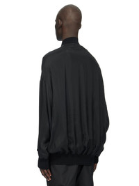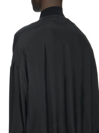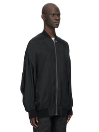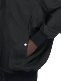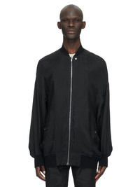 RICK OWENS SS23 EDFU JUMBO PETER FLIGHT IN BLACK CUPRO JAPONETTE THIS JUMBO PETER FLIGHT IS BELOW HIP LENGTH WITH A JUMBO OVERSIZED FIT. IT HAS A CENTRE FRONT ZIPPER, TOP SNAP DETAIL, LONG SLEEVES AND LOW SHOULDERS WITH A DROPPED ARMHOLE AND LEVEL SHOULDER SEAMS. IT HAS TWO SIDE SEAM POCKETS WITH VISIBLE SNAPS AND A RIBBED COLLAR, CUFFS AND HEM. IT IS FULLY LINED WITH TWO INTERNAL ZIPPED POCKETS THIS CUPRO JAPONETTE IS LIGHTWEIGHT AND DRAPEY. WE CHOSE CUPRO FOR THIS PRODUCT BECAUSE CUPRO FIBER IS BIODEGRADABLE AND 100% PLANT BASED. AS IT’S MADE FROM COTTON WASTE, CUPRO HELPS FIND A PURPOSE TO FIBERS THAT WOULD OTHERWISE BE DISCARDED - COLOR: BLACK - MATERIAL: 100% CUPRO - KNIT RIB COLLAR + WRIST BAND + BOTTOM 100% COTTON - MODEL IS WEARING SIZE 48 - MODEL IS 189 CM TALL