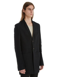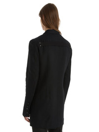 RICK OWENS FW22 STROBE LIDO JKT IN HEMP COTTON CANVAS THIS LIDO JKT IS BELOW THE HIP LENGTH, SOFTLY SHAPED AND HAS LONG SLEEVES. IT HAS A LAPEL WITH A DEEP V WRAP AND TWO BUTTON FRONT CLOSURE. IT FEATURES TWO FOGCATCHER BREAST POCKETS WITH INVISIBLE SNAP AND TWO SIDE FRONT PATCH POCKETS WITH HAVE INSIDE ZIP POCKET. IT HAS A CENTRE BACK VENT AND FIVE-BUTTON CUFFS WITH TOPSTITCHING ON ALL SEAMS, AND A COTTON WEBBING STRAP WITH RIVET DETAIL ACROSS THE BACK YOKE THIS JAPANESE COTTON AND HEMP BLEND CANVAS HAS A CRISP AND DRY HANDFEEL. - COLOR: BLACK - MATERIAL: 79% COTTON + 21% TRUE HEMP - SLEEVES AND FRONT POCKET LINING 100% CUPRO - UPPER POCKETS LINING 100% COTTON - MODEL IS WEARING SIZE 48 - MODEL IS 189 CM TALL