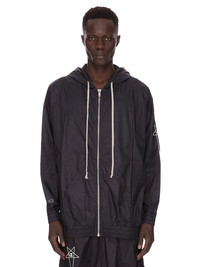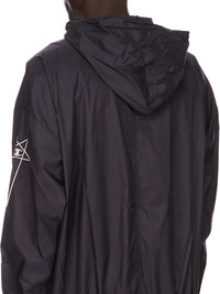 CHAMPION X RICK OWENS SS25 JUMBO JASON'S HOODIE IN BLACK LIGHT NYLON IT FEATURES A 3D EMBROIDERED SIGNATURE CHAMPION X RICK OWENS PENTAGRAM LOGO ON THE LEFT UPPER ARM AND CHAMPION LOGO ON RIGHT WRIST THIS AIRY AND LIGHTWEIGHT NYLON IS MADE USING CERTIFIED RECYCLED NYLON WHICH ENSURES A REDUCTION IN WATER CONSUMPTION, EMISSIONS AND HAZARDOUS WASTE, LESSENING THE DEPENDENCE ON NON-RENEWABLE RESOURCES COLOR: BLACKMATERIAL: 100% POLYAMIDE MODEL WEARS SIZE M MODEL IS 189CM TALL