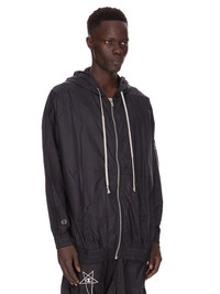 CHAMPION X RICK OWENS SS25 JUMBO JASON'S HOODIE IN BLACK LIGHT NYLON IT FEATURES A 3D EMBROIDERED SIGNATURE CHAMPION X RICK OWENS PENTAGRAM LOGO ON THE LEFT UPPER ARM AND CHAMPION LOGO ON RIGHT WRIST. THIS AIRY AND LIGHTWEIGHT NYLON IS MADE USING CERTIFIED RECYCLED NYLON WHICH ENSURES A REDUCTION IN WATER CONSUMPTION, EMISSIONS AND HAZARDOUS WASTE, LESSENING THE DEPENDENCE ON NON-RENEWABLE RESOURCES. COLOR: BLACK MATERIAL: 100% POLYAMIDE MODEL WEARS SIZE M MODEL IS 189CM TALL