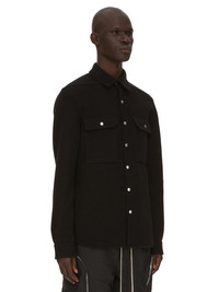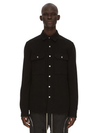 RICK OWENS FW23 LUXOR OUTERSHIRT IN BLACK DOUBLE CASHMERE THIS OUTERSHIRT IS BELOW HIP LENGTH WITH A BOXY FIT. IT HAS A CENTRE FRONT OPENING WITH VISIBLE SNAP CLOSURES, A CLASSIC SHIRT COLLAR, BEVELED SIDE SEAMS, SNAP CUFFS AND DOUBLE TOPSTITCHING. IT FEATURES TWO CHEST POCKETS WITH BEVELED FLAPS, THE SIGNATURE LEVEL SHOULDER SEAMS AND A COTTON WEBBING STRAP WITH RIVET DETAIL ON THE BACK YOKE. THIS VERSION IS UNLINED AND HAS TWO INTERNAL POCKETS THIS HEAVYWEIGHT PURE CASHMERE QUALITY IS WOVEN ON A DOUBLE WARP IN ORDER TO ACHIEVE ITS HEAVINESS AND CREATE A DOUBLE-FACED FABRIC. THE FINISHED ROLL IS THEN WASHED TO ADD SOFTNESS AND TEXTURE. - COLOR: BLACK - MATERIAL: 100% CASHMERE - INSIDE POCKETS 97% COTTON + 3% ELASTANE - MODEL IS WEARING SIZE 48 - MODEL IS 189 CM TALL